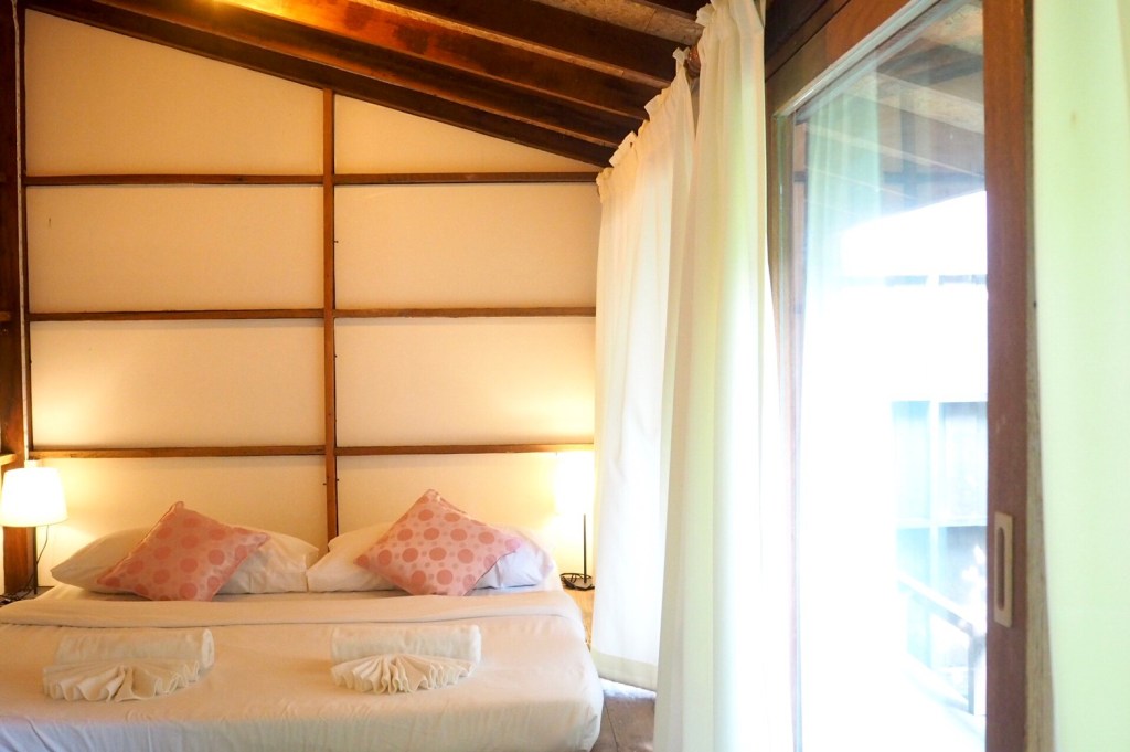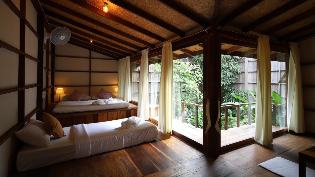 ห้องพักรูปแบบของโฮมสเตย์เป็นบ้านไม้แบบยกโถงสูง จะมีทั้งหมด 4 หลังคือ เรือนมะม่วง เรือนกระท้อน เรือนชมพู่ และ เรือนมะปราง เท่านั้น โดยแต่ละหลังจะอยู่ติดกันแต่บริเวณบ้านตัดขาดจากกัน มีความเป็นส่วนตัวของแต่ละหลัง สามารถ Check-in ได้ตั้งแต่ 15:00 น. – 19:00 น. และ Check-out ก่อน 12:00 น. นะคะ