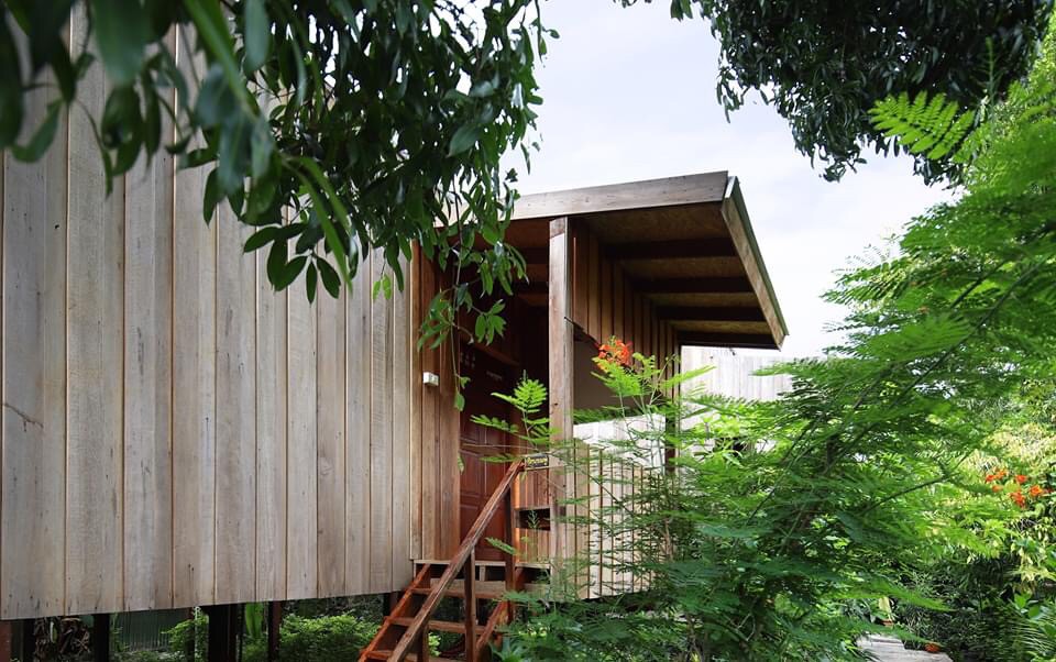 หนึ่งในโฮมสเตย์ท่ามกลางความเขียวขจีของสวนแห่งนี้ มีการปรับแปลงรูปทรงของที่พักให้โมเดิร์นขึ้น เป็นสไตล์กล่องเหลี่ยม มีความเรียบง่ายที่มีความทันสมัยเข้ามาใช้ โดยแต่ละหลังจะมีชื่อเรียกตามต้นไม้ที่อยู่ด้านหน้าเรือน ตอนจองสามารถรีเควสได้นะคะว่าอยากได้เรือนไหน แต่ทางเจ้าของจะแจ้งกลับให้อีกครั้งค่ะว่าเราได้พักเรือนอะไรจ้า
