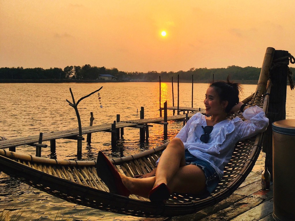 นั่งไปนั่งมา เดินถ่ายรูปเก็บภาพสวยๆรอบๆร้านจนได้เวลาพระอาทิตย์ใกล้ตก ขอเปลี่ยนชุดชิวส์ๆ ไปนั่งเอาเท้าจุ่มน้ำ ตบท้ายด้วยนอนชมพระอาทิตย์ตกสวยๆ กันอีกซักบรรยากาศนะ ใครจะคิดว่าที่นี่ คือคาเฟ่ที่อยู่ห่างจากกรุงเทพไม่กี่กิโล แค่สมุทรปราการเอง เหยียบคันเร่งมากันเถอะ อยากให้มาชิวส์ มาสัมผัสบรรยากาศแบบวิว 180 องศา ให้รางวัลกับร่างกายตัวเองหลังจากเร่งรีบมาทั้งสัปดาห์