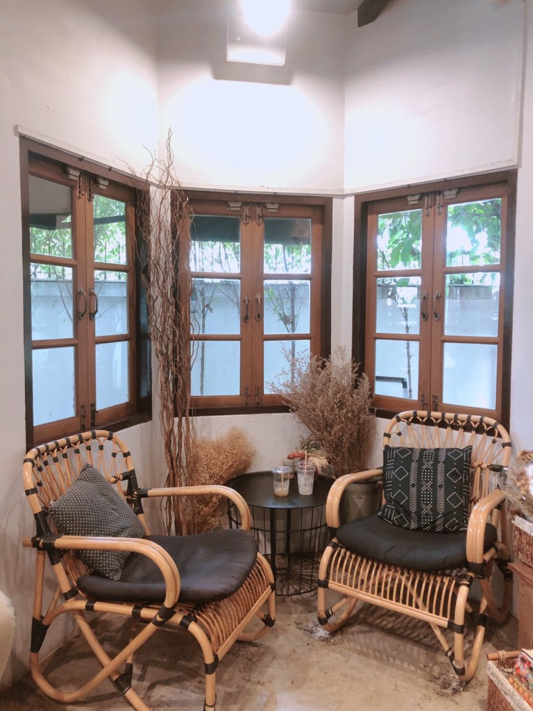 แต่มุมหนึ่งของร้านที่ชิลล์สุดๆ เหมือนมานั่งเก้าอี๊หวาย ทานขนมเล่นบ้านคุณยายเพื่อน ก็ต้องยกให้มุมนี้เลยค่ะ นั่งเพลินจนอาจจะหลับได้