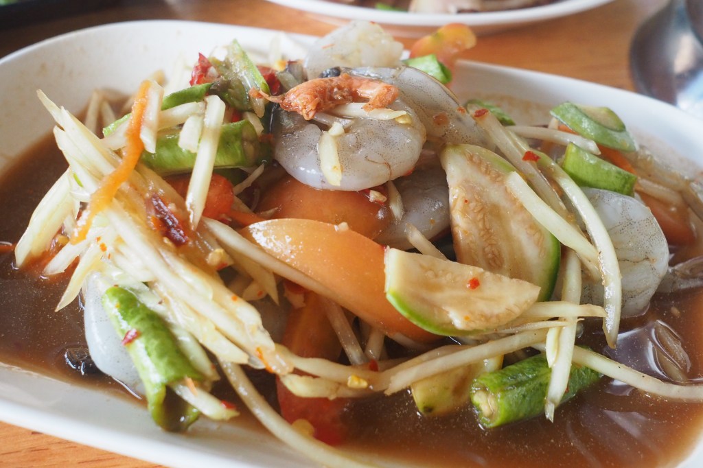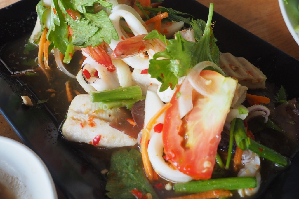 ที่นี่มีอาหารหลากหลายเมนู เป็นอีสานปรุงจากวัตถุดิบสดๆ รสชาติจัดจ้านให้ได้เลือกทาน สามารถออเดอร์ระดับความเผ็ดได้ตามที่ต้องการ รสแซ่บนัวสมชื่อร้านเลยล่ะ เมนูเยอะมากจนเลือกไม่ถูก ตั้งแต่ ไก่ย่าง ส้มตำ ยำ ต้มแซ่บ ลาบเป็ด คอหมูย่าง ยำผักบุ้งกรอก ยำรวมมิตร ส่วนตัวแล้วชอบส้มตำแคปหมู ถึงกับเบิ้ลจานสองอร่อยเว่อร์ๆ