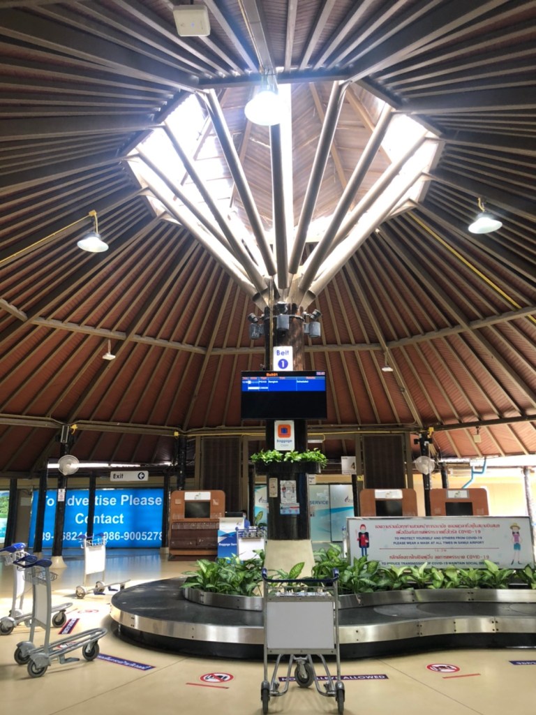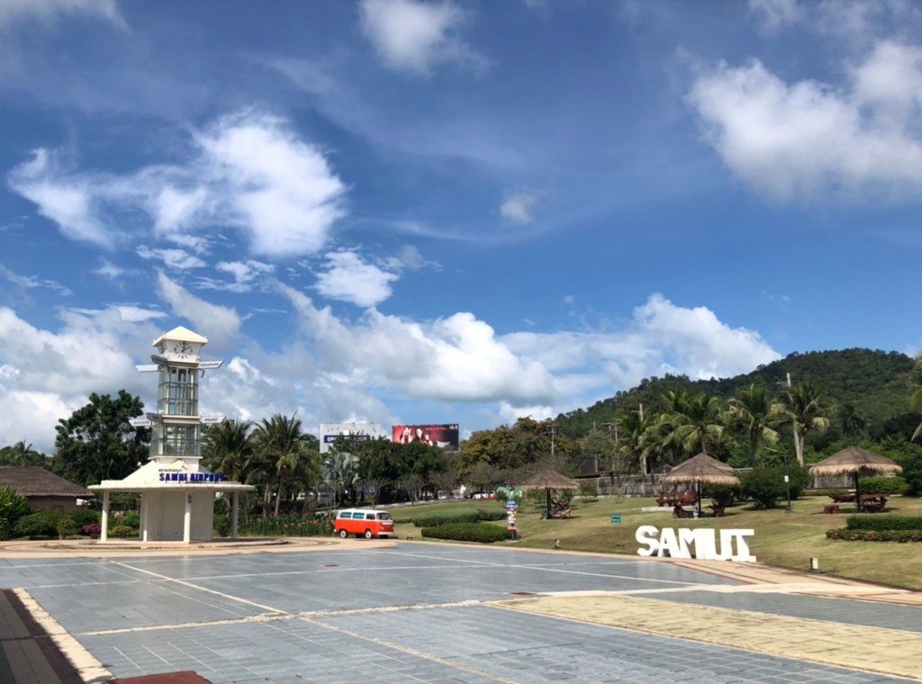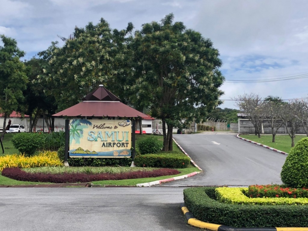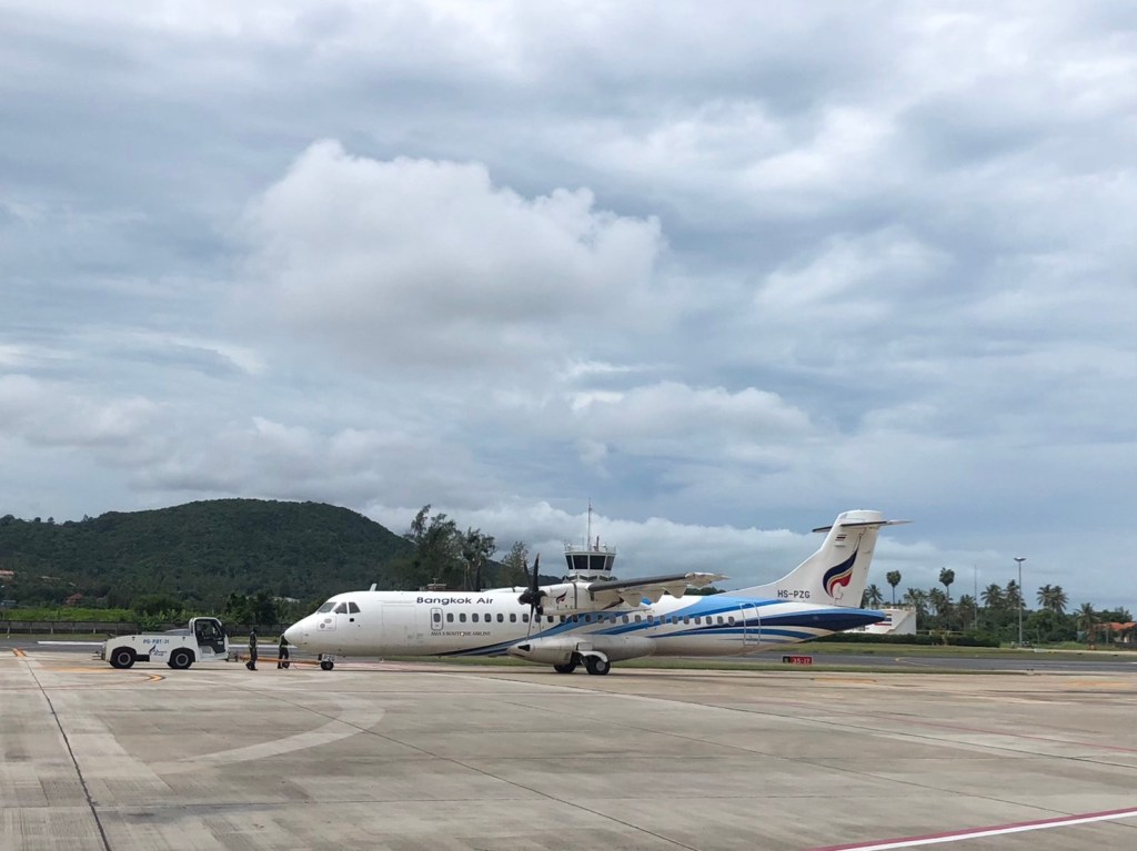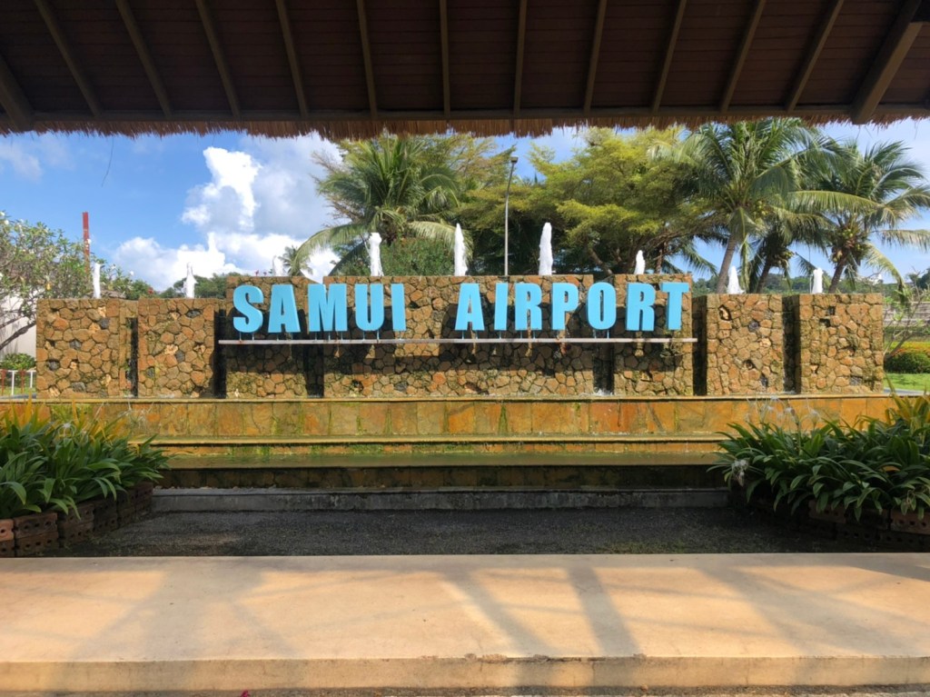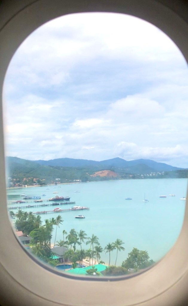 เผลอแปปเดียว กัปตันก็ประกาศว่าเครื่องกำลังจะลงจอดยังท่าอากาศยานนานาชาติสมุย ระหว่างเครื่องลง มองออกไปจากหน้าต่างเครื่อง จะเห็นวิวสวยๆรอบๆสนามบินเลย