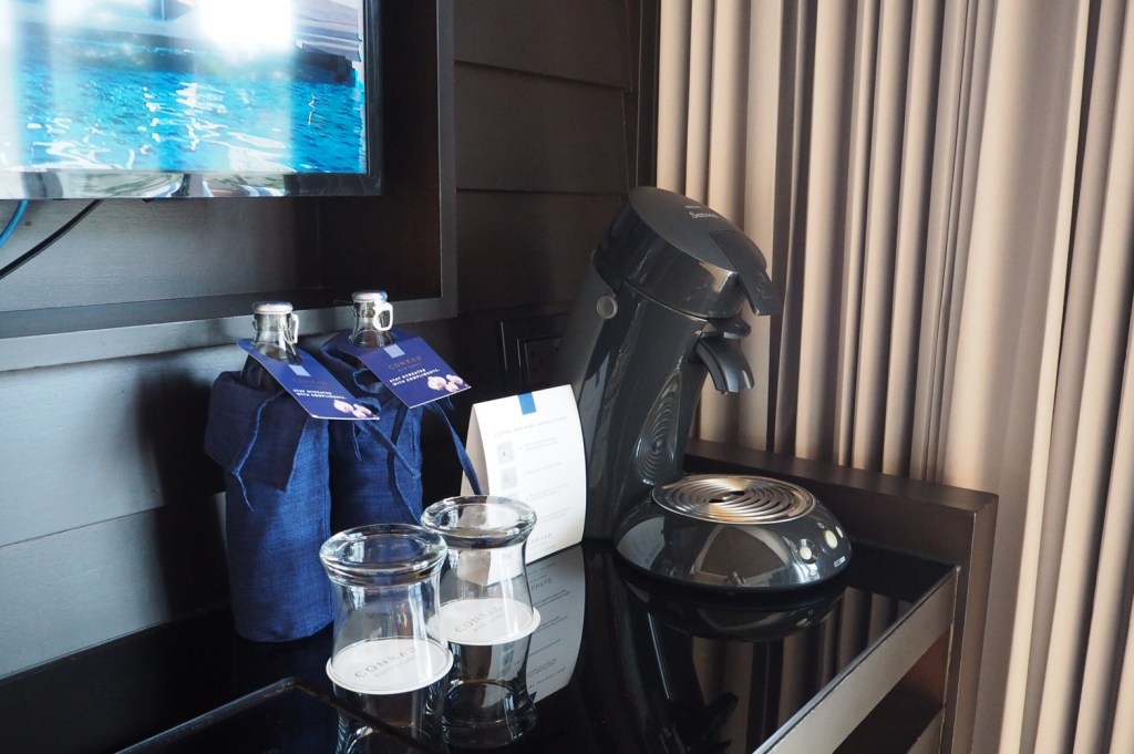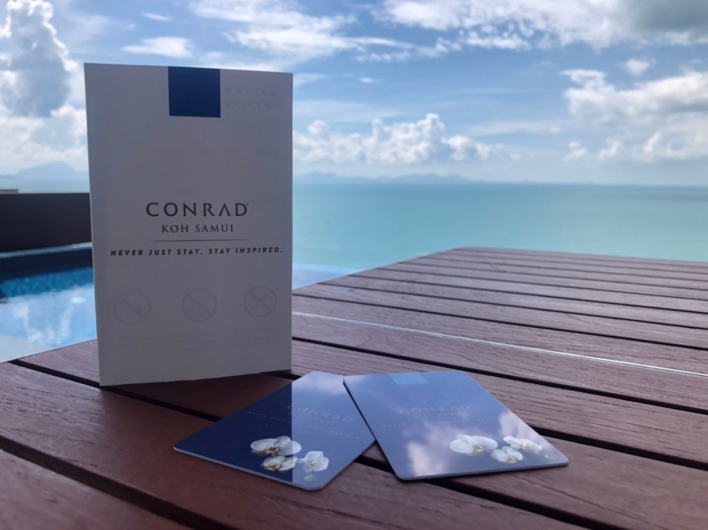 คอนราดอยู่ในเครือ Hilton ดังนั้นใครเป็น gold หรือ diamond ใช้สิทธินะคะ จะได้ฟรีดิงค์ 2 ใบต่อ 1 คืน และ Late Check Out