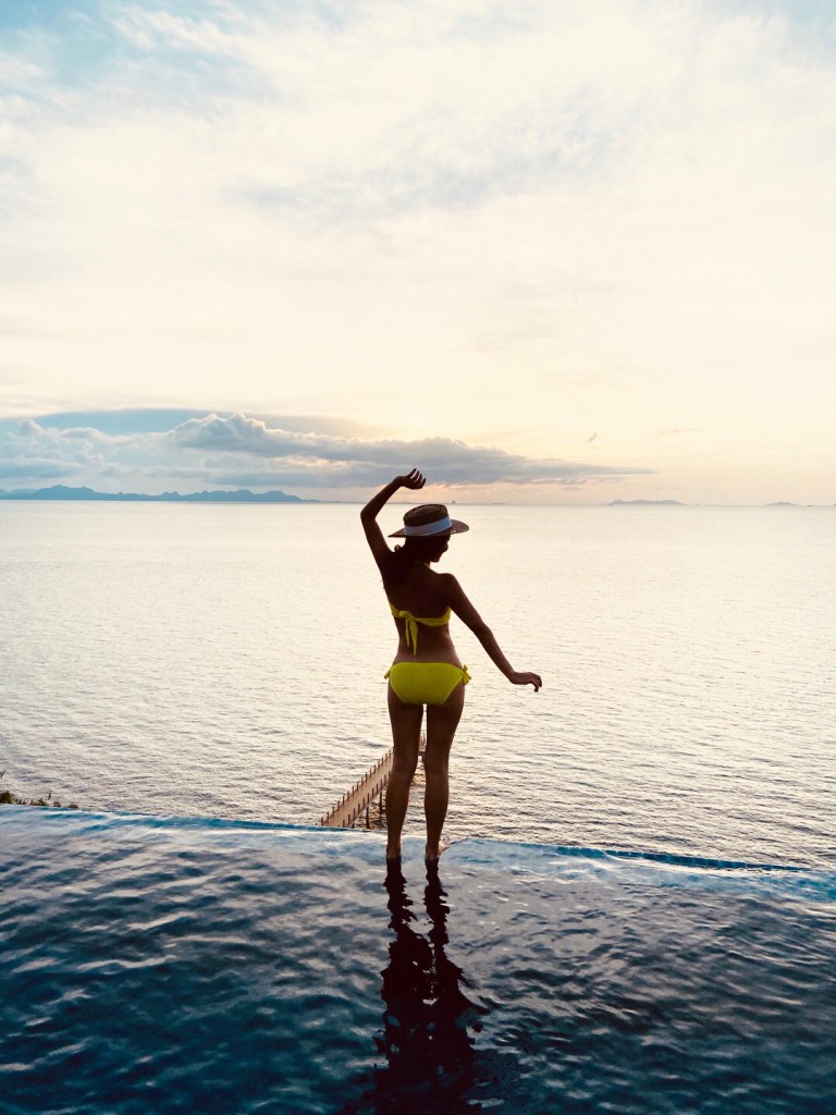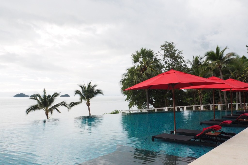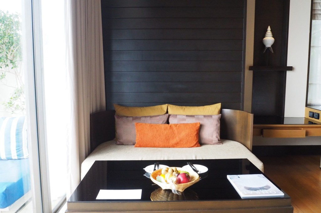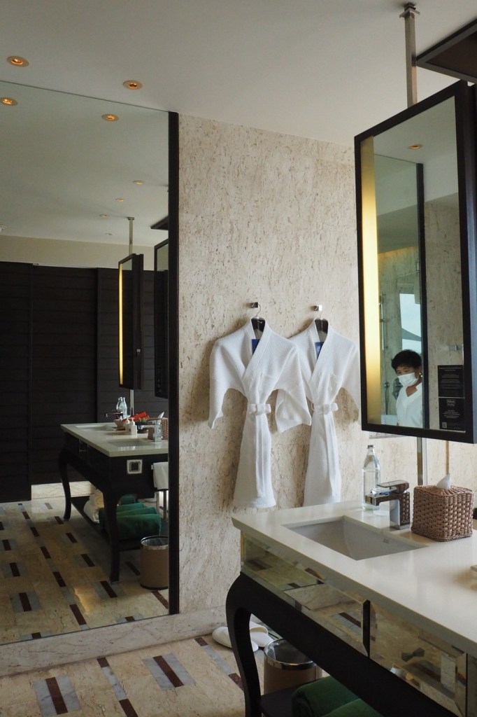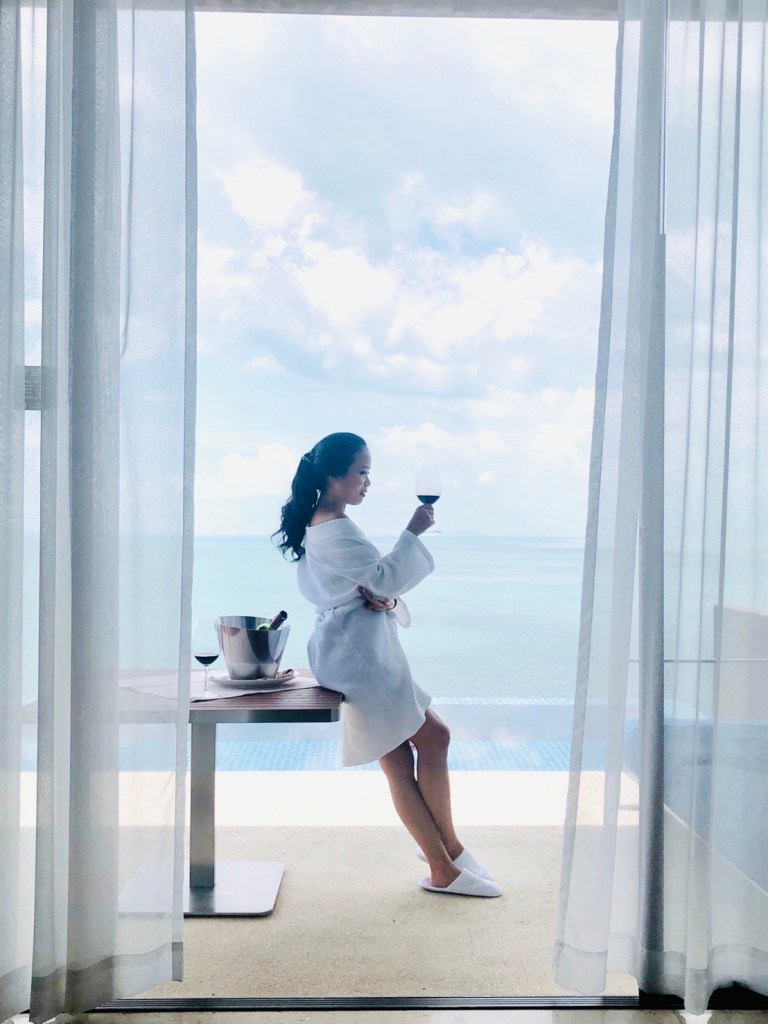 บรรยากาศในห้อง แบบ “Ocean view pool villa” ห้องพักค่อนข้างใหญ่มาก ทั้งโซนห้องนอน และในห้องน้ำ ตรงระเบียง มีสระว่ายน้ำส่วนตัวให้สามารถว่ายไปชมวิวไป ชมพระอาทิตย์ตกดินไป ทีวีสามารถต่อเชื่อมซิงค์กับ อุปกรณ์ของแอปเปิ้ลได้ และมีอินเตอร์เน็ตใช้ได้ทั่วทั้งโรงแรม