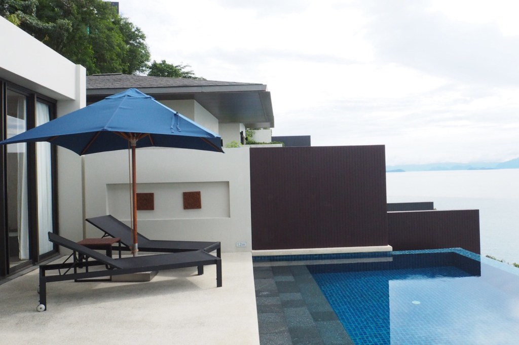 วิลล่าทุกห้องมีสระว่ายน้ำส่วนตัว หันหน้าออกสู่ทะเล ความยาวสระประมาณ 12 เมตร จัดว่าไม่เล็ก ไม่ใหญ่จนเกินไป เล่นน้ำได้เพลินๆ