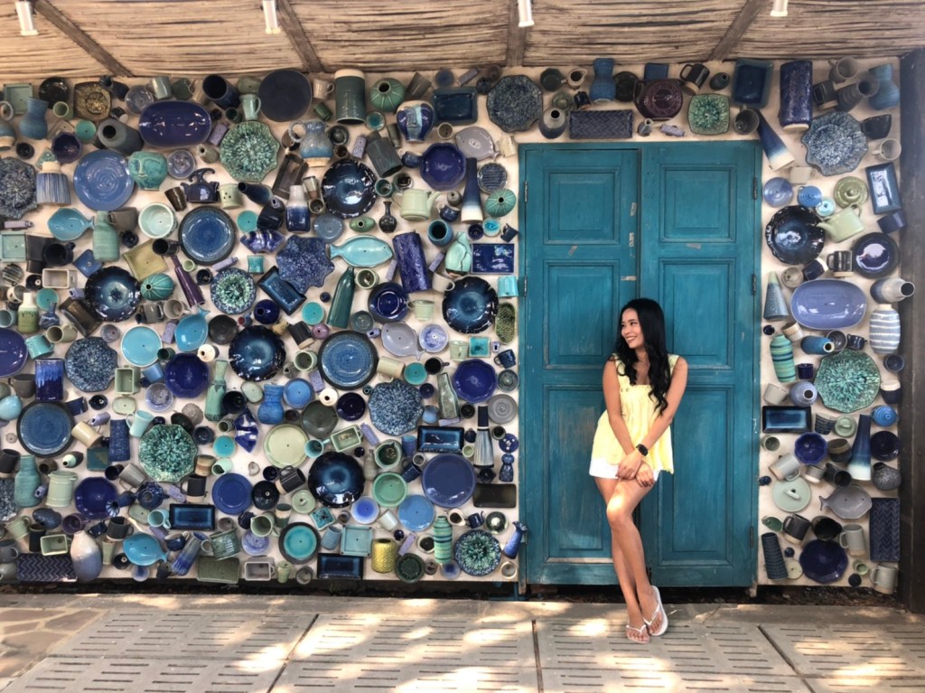 คาเฟ่กู้ดเก๋สไตล์เมดิเตอร์เรเนียน ตกแต่งด้วยเซรามิกโทนฟ้าขาว ขอเปิดด้วยภาพมุมมหาชน ที่ใครมา เดินเข้าร้านปุ๊ป ก็เจอมุมนี้ปั๊ป ขอแชะซักภาพ