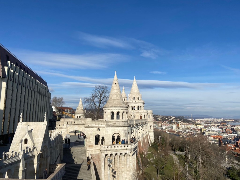 เช้าวันที่ 2 ของการมาฮังการี ออกเดินทางด้วยรถไฟ และต่อบัส เพื่อมุ่งหน้าไปเที่ยวป้อมชาวประมง (Fisherman’s Bastion) เราเลือกที่จะไปป้อมชาวประมงที่แรกแต่เช้าตรู่เพราะถ้าสายแล้วนักท่องเที่ยวจะเยอะมากจนแทบไม่มีมุมให้ถ่ายรูปสวยๆเลยค่ะ ป้อมปราการนี้ถูกออกแบบเป็นสีขาวสไตล์นีโอโกธิค สร้างขึ้นเป็นอนุสรณ์สำหรับรำลึกความกล้าหาญของเหล่าชาวประมงที่เสียสละต่อสู้เพื่อรักษาเมืองนี้ไว้