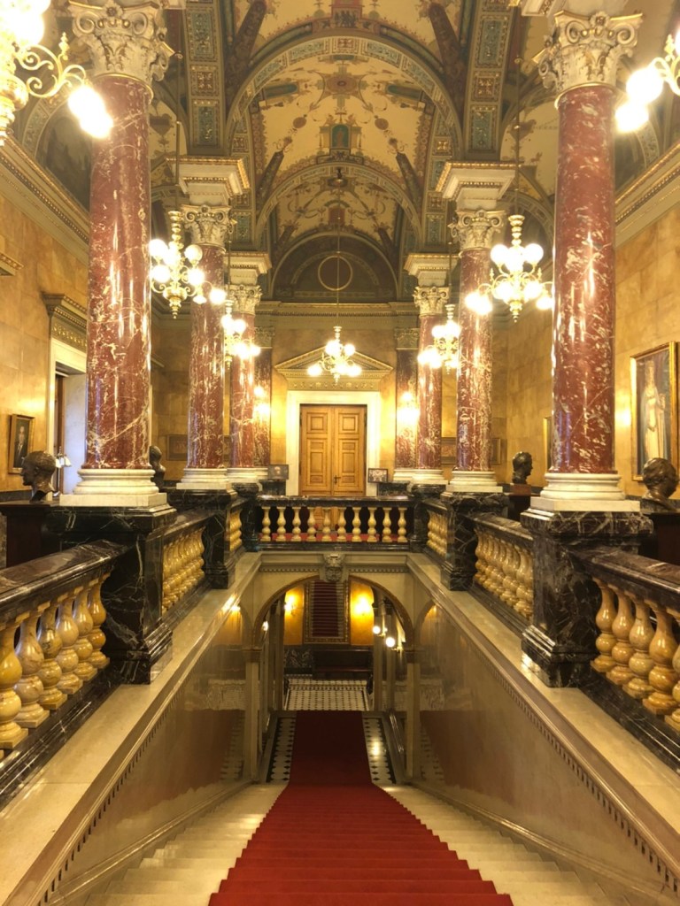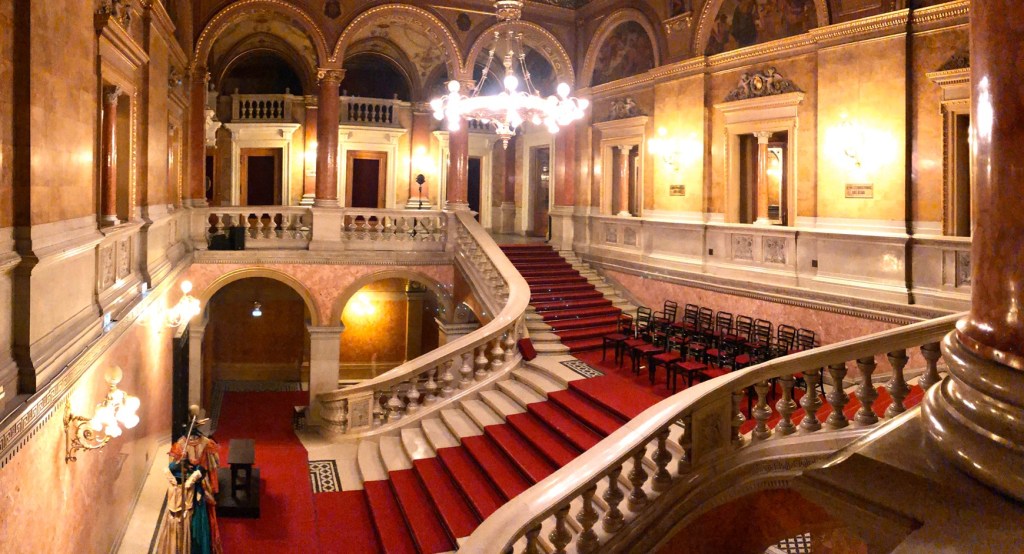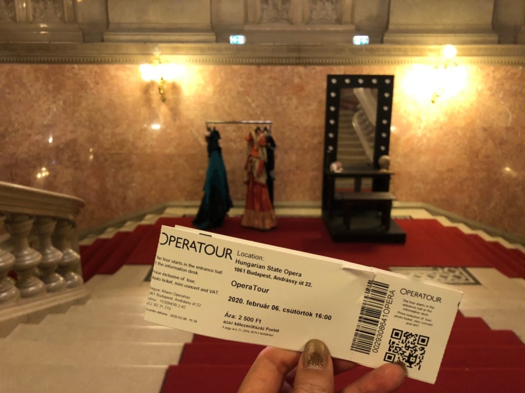 นั่งรถไฟมาเที่ยวต่อที่ Hungarian State Opera House เป็นโรงโอเปร่าที่สวยงาม ปูพรมแดงอลังการ สามารถซื้อบัตรทางด้านหน้าเพื่อเข้าชมการแสดงสด เสียงก้องกังวาลตราตรึงใจที่สุด