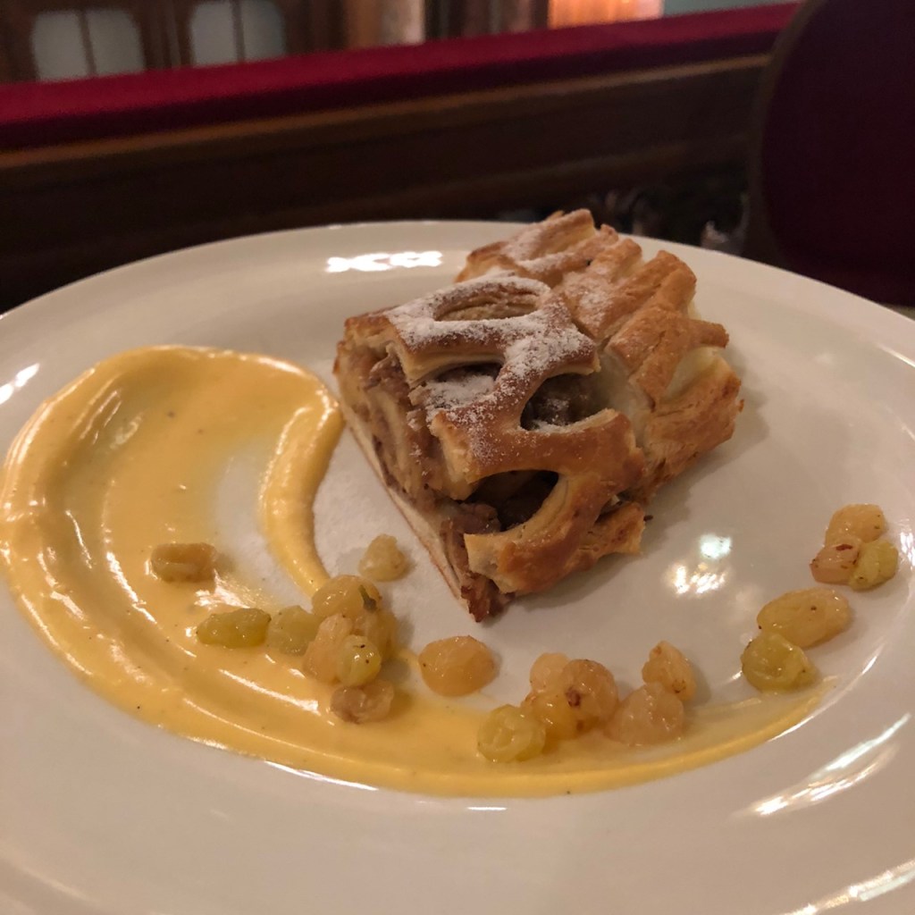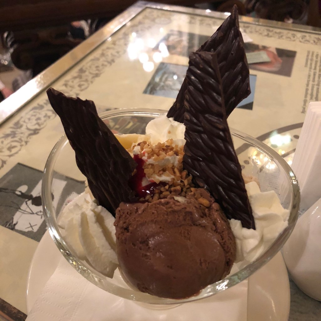 ใครสายคาเฟ่ที่ได้มาที่นี่ คือ ที่สุดของคาเฟ่แล้วจริงๆ พนักงานที่รับออเดอร์แต่งตัวประดุจเจ้าชาย แถมอารมณ์ดี แนะนำนั่นนี่ให้แบบเป็นกันเองมาก ทางร้านแนะนำ STRUDEL เป็นขนมท้องถิ่นของประเทศออสเตรีย คนยุโรปนิยมทานกัน ด้านในจะสอดไส้ผลไม้นานาชนิด ส่วนมากเน้นตระกูลเบอร์รี่ ทานคู่กับ New York Latte Macchiato with 24 Carat Gold กลิ่นหอมคาราเมล รสชาตินุ่มนวล เสริฟมาพร้อมคุกกี้ และตบท้ายด้วย Dark Coconut Choco Ice-Cream รสชาติเข้มข้นอร่อยค่ะ