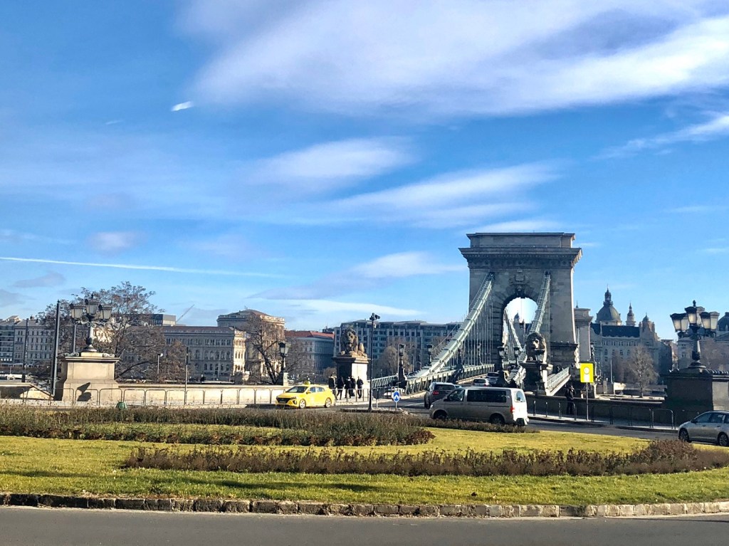 เราเดินไปต่อเพื่อจะข้ามจากฝั่งบูดา ไปยังฝั่งเปสต์ โดยเดินข้ามผ่านสะพานเชน (Chain Bridge) เป็นหนึ่งในสะพานที่เรียกว่าสวยที่สุดในยุโรป เป็นสัญลักษณ์ของบูดาเปสต์ (Budapest) เลยก็ว่าได้ สร้างจากเหล็กล้วนๆ กับรูปปั้นสิงโตด้านหน้า ระหว่างข้ามสามารถหยุดชมวิวอยู่ตรงกลางสะพานสวยดีค่ะ แต่ลมค่อนข้างแรง ต้องระวังสัมภาระปลิวตกลงไปในแม่น้ำด้วยนะคะ