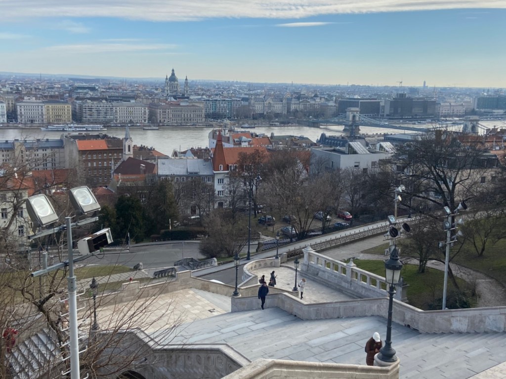 หม่ำเสร็จมีแรงเที่ยวต่อ ตอนขาขึ้นมา Castle Hill เรานั่งบัสขึ้นมา แต่ตอนขาลง เราเลือกที่จะเดินเท้าลงไป เพื่อชมทรรศนียภาพบ้านเมืองของเค้า เดินไปเรื่อยๆจนถึงฝั่งตรงข้าม อาคารรัฐสภาฮังการี (Hungarian Parliament) เรายืนชมอยู่ฝั่งบูดา แต่ตัวอาคารตั้งเด่นตระหง่านอยู่ริมแม่น้ำดานูบบนฝั่งเปสต์