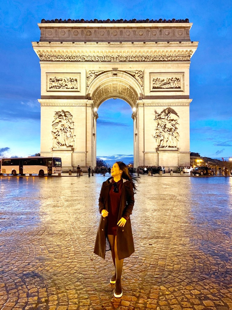 มุมตรงนี้จะเป็นมุมมหาชนที่ยืนถ่ายกันกลางถนนเลยค่ะ รอจังหวะช่วงไฟเขียว ไฟแดง เอานะคะ แต่แถวที่ต่อคิวถ่ายรูปก็ยาวพอสมควร นอกจากนี้ด้านบนของประตูชัยสามารถซื้อ Ticket ขึ้นไปชมวิวมุมสูงได้อีกด้วย จะมองเห็นวิวของถนนฌ็องเซลิเซ่ และมองเห็นหอไอเฟลในมุมสูง