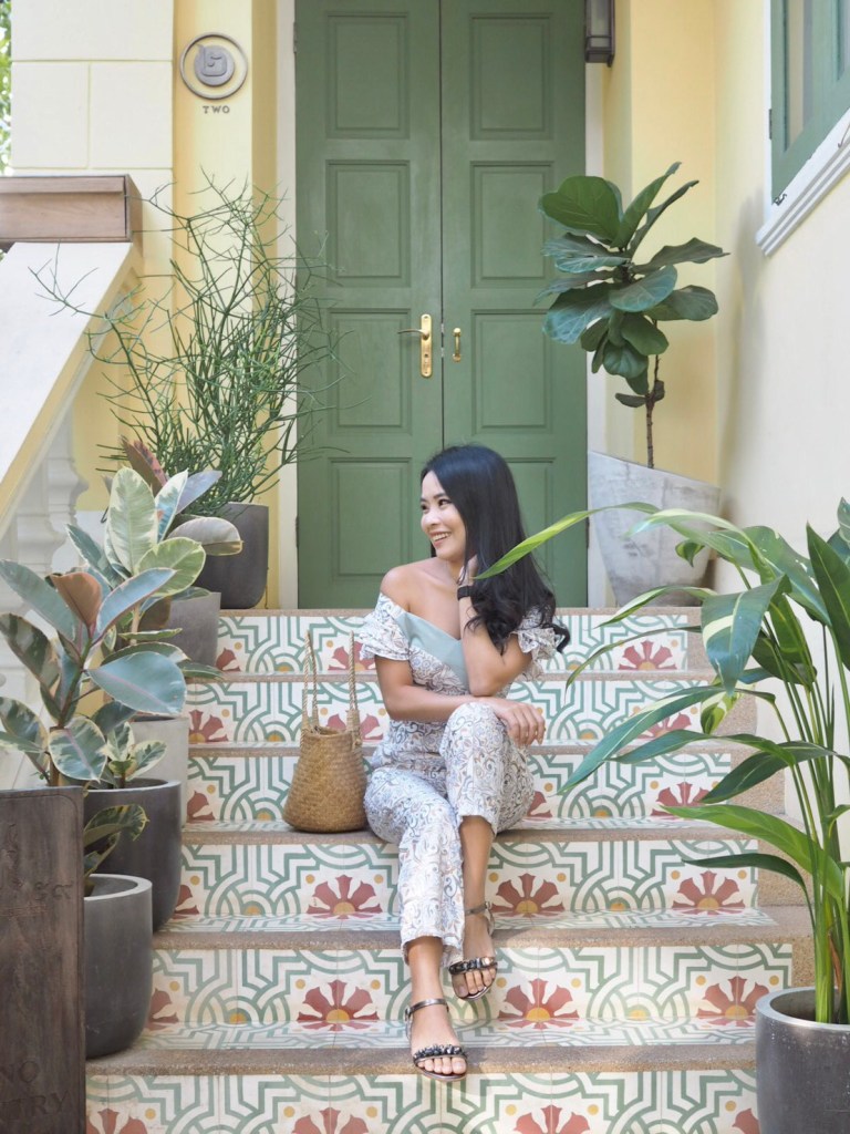 นอกจากสีอาคารที่คลาสสิคแล้ว ลายกระเบื้องก็คลาสสิคมาก ให้ฟิลลิ่งย้อนกลับไปสมัยรัชกาลที่ 6 เลยจริงๆ ถ่ายรูปยังไงก็ออกมาคลาสสิค