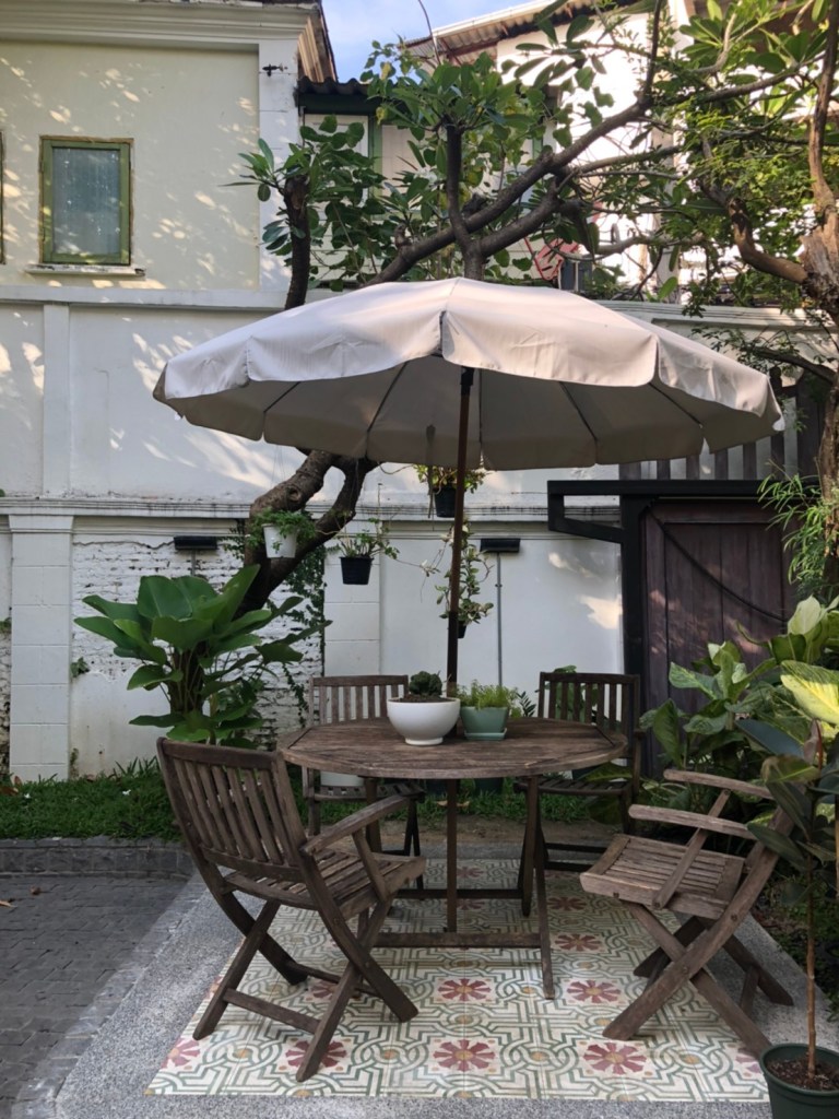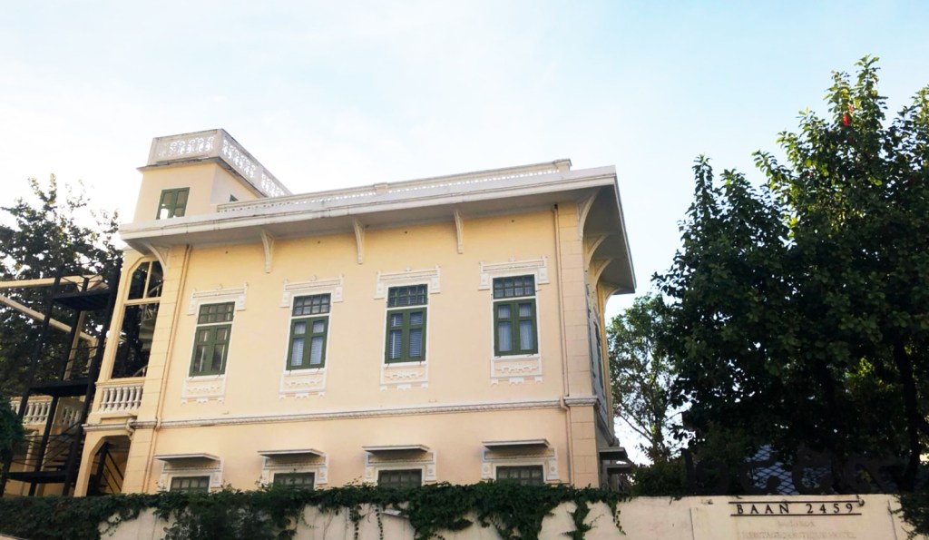 ได้กาแฟแล้ว รูปมุมมหาชนก็ได้แล้ว แนะนำลองออกไปเดินโซนด้านนอกดู สีของตัวอาคารเหลืองๆตัดกับสีเขียวไข่กา ที่เป็นส่วนของโรงแรม BAAN 2459 ให้รูปถ่ายอีกบรรยากาศเลยค่ะ