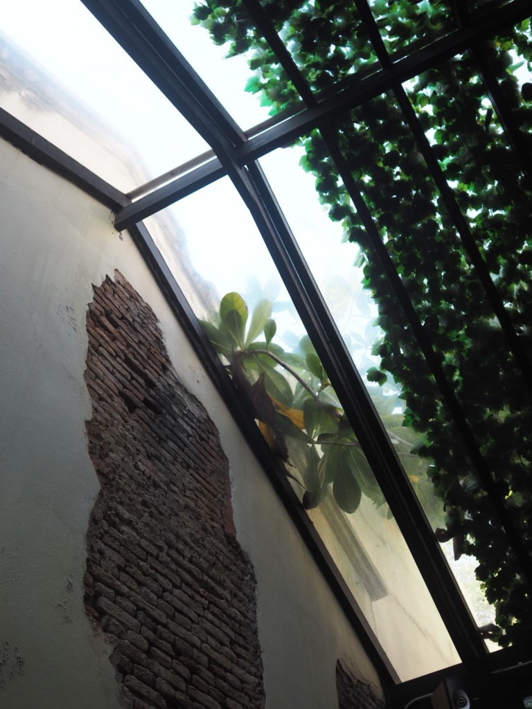 คาเฟ่ที่นี่เป็นเรือนกระจก ตกแต่งสไตล์ลอฟต์ ผสมผสานความทันสมัยเข้าไป ไฮไลท์ของที่ร้านคือ กำแพงอิฐเก่าที่มีการสึกกร่อนไปตามกาลเวลา ตกแต่งเป็นผนังด้านในร้าน