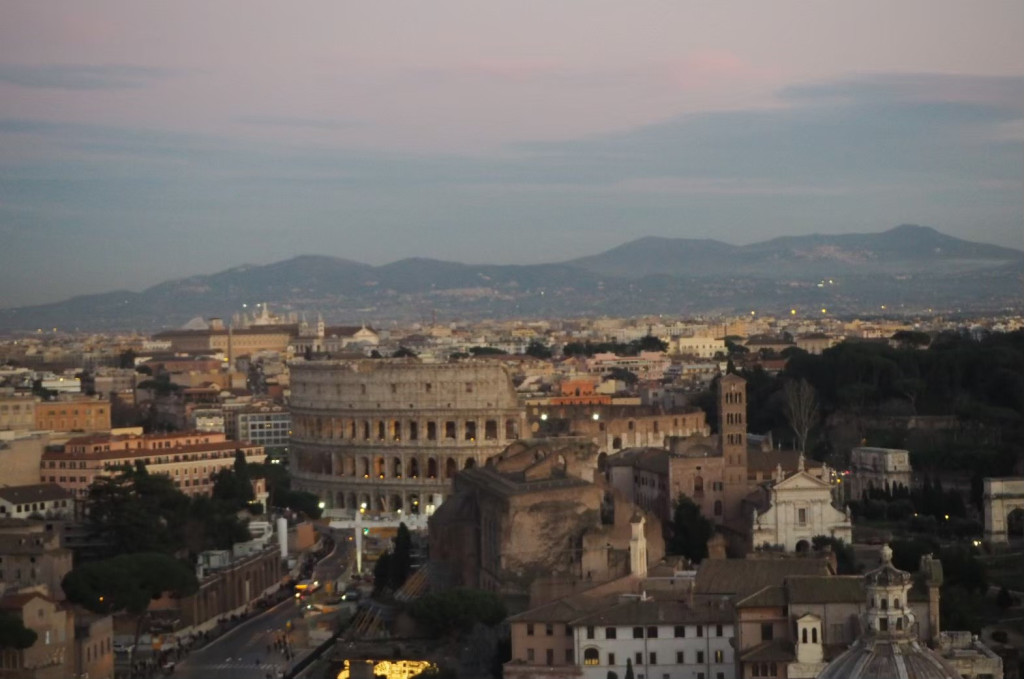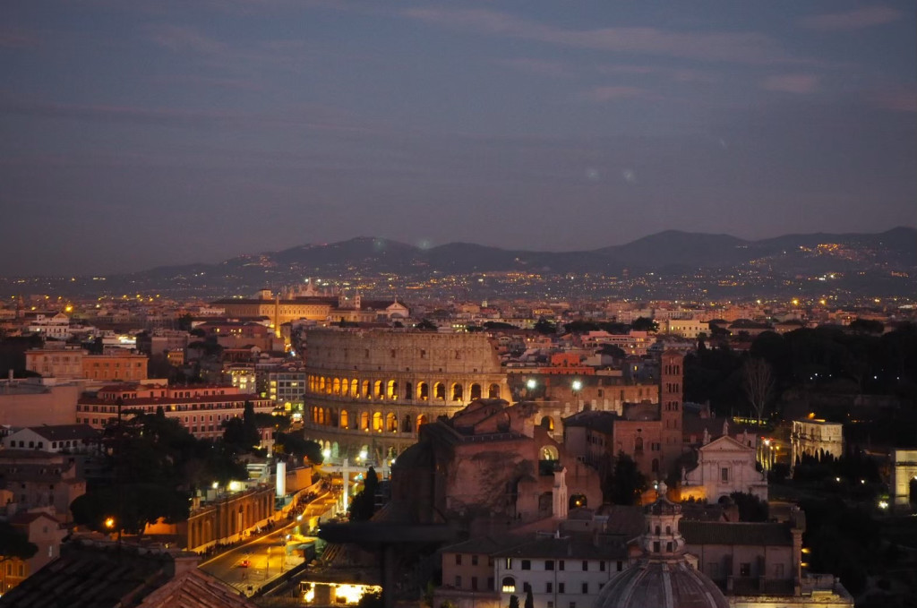เดินชมวิวเพลินๆ หันมาอีกที โคลอสเซียมเปิดไฟยามค่ำคืนแล้ว ก็ได้บรรยากาศอีกแบบนะคะ ได้ชมทั้งแบบกลางวันและยามค่ำคืน