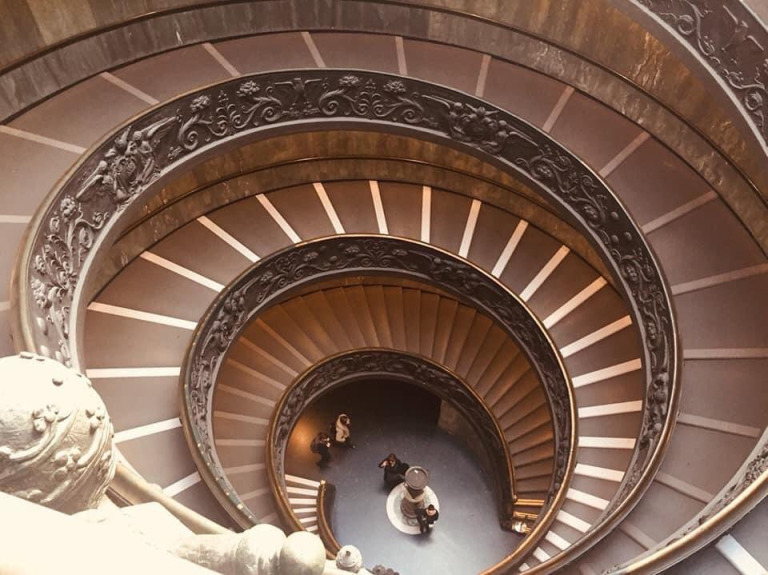 และจะพลาดไม่ได้กับแนะนำมุมมหาชนของพิพิธภัณฑ์นี้ จะต้องมาแวะถ่ายรูปกันนั่นก็คือบันไดวน อยู่ตรงบริเวณทางออกพิพิธภัณฑ์ เป็นผลงานของบรามันเต (Bramante) เป็นบันไดที่มีชื่อเสียงมากที่สุดแห่งหนึ่งของโลก