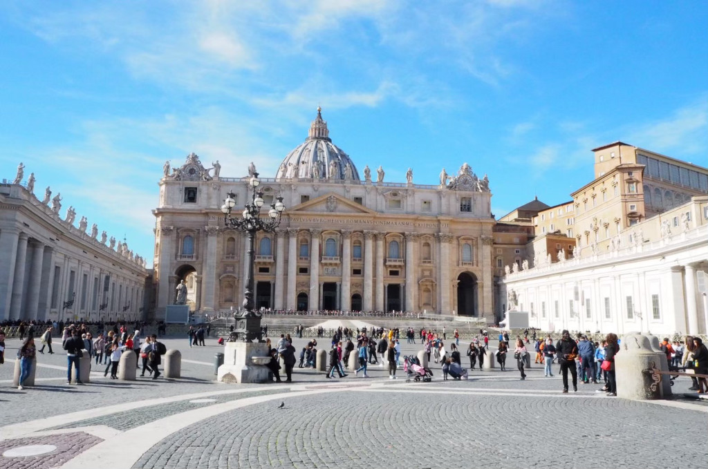 ด้านหลัง คือ จัตุรัสเซนต์ปีเตอร์ส (Saint Peter’s Square)