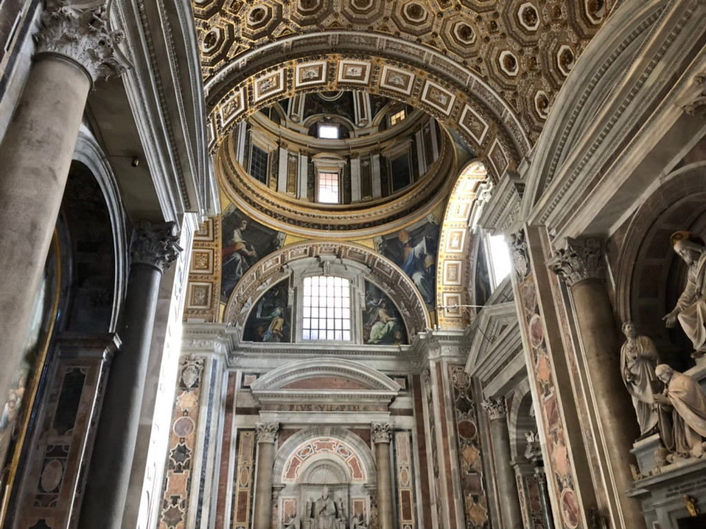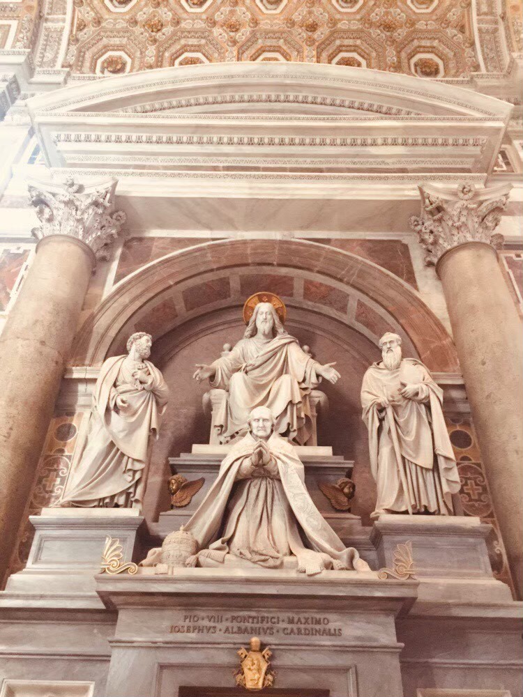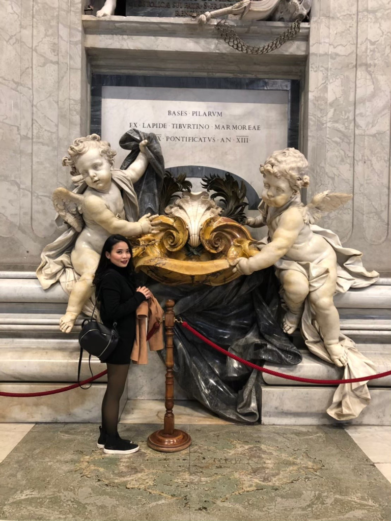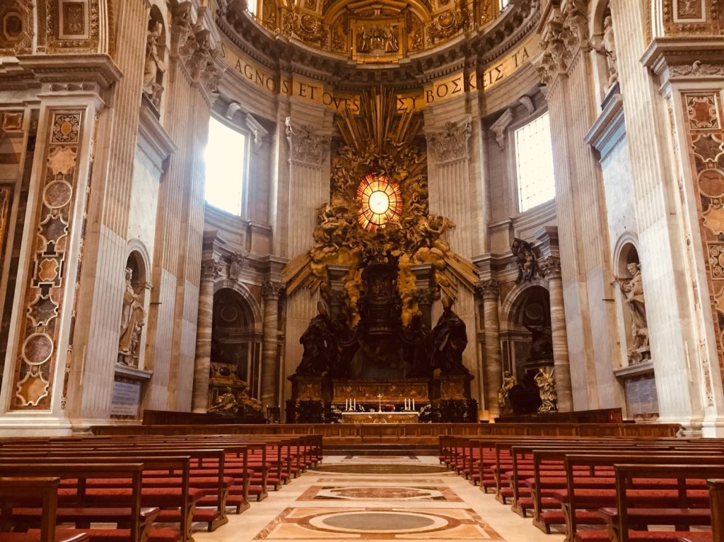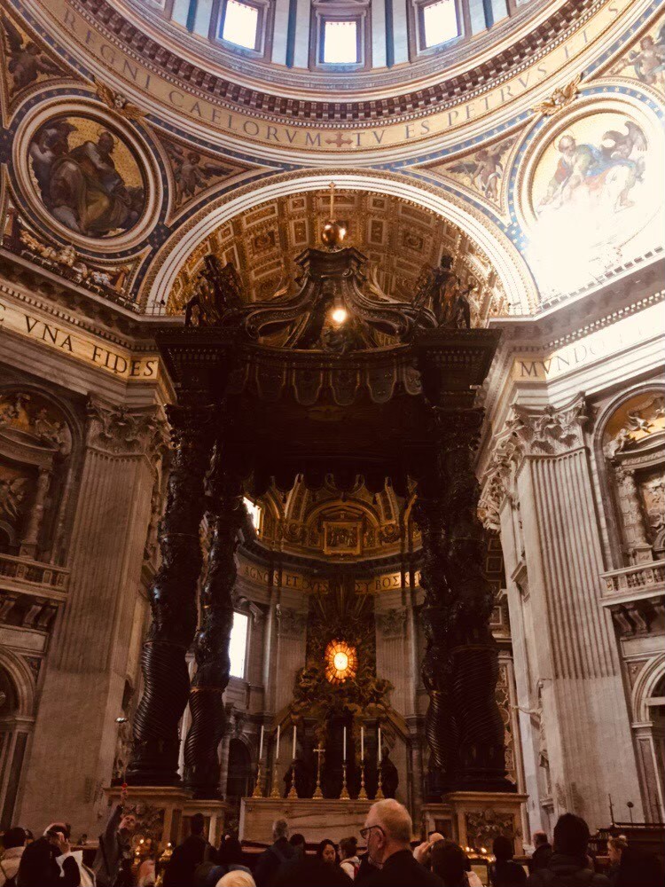 สิ่งนี้เรียกว่า St. Peter’s Baldachin หรือซุ้มเซนต์ปีเตอร์ ผลงานของ Bernini นักท่องเที่ยวนิยมมาถ่ายภาพมุมนี้กันเป็นจำนวนมาก ถึงขั้นต่อคิวยาวเหยียด