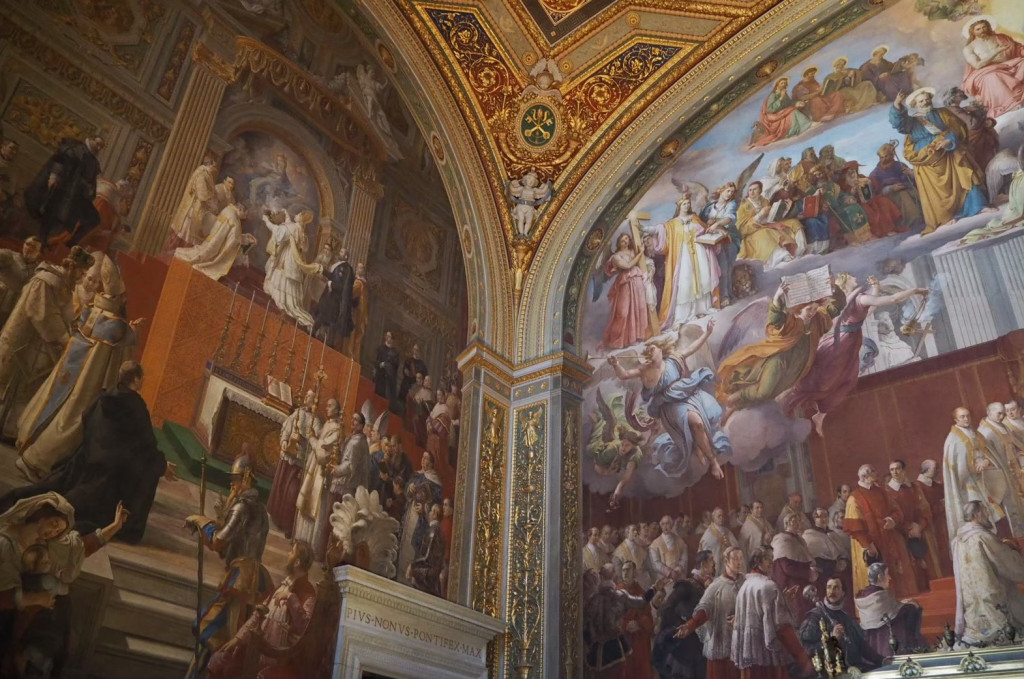 ผู้คนบริเวณด้านหน้าจตุรัสเยอะมาก คือ ถ่ายยังไงก็ติดคนจ้า วันที่เราไปนี่ช่วงเช้า ถือว่าคนยังน้อยนะคะ ถ้าเริ่มสายๆ นี่นึกว่ามากันเป็นหมู่คณะแบบไม่รู้จักกันค่ะ 555+ แล้วเราก็เดินไปต่อกันที่โซนของพิพิธภัณฑ์วาติกัน (The Vatican Museums) สร้างขึ้นในสมเด็จพระสันตะปาปาจูเลียสที่ 2 โดยได้เก็บสะสมผลงานทางศิลปะของศาสนจักรคาทอลิก