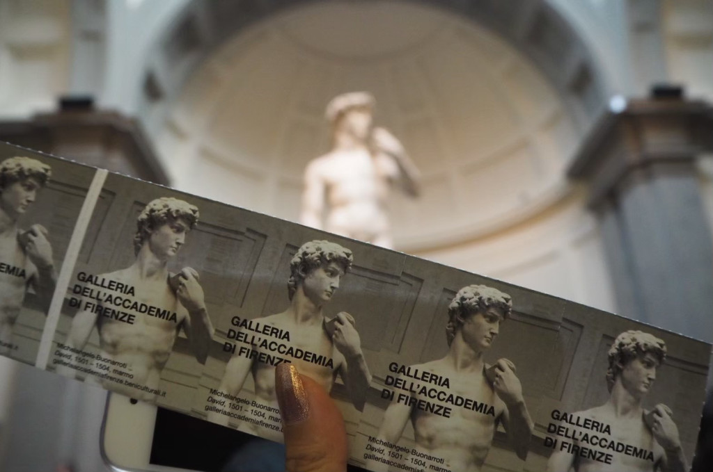 ถัดจากโบสถ์นี้ไปเป็น พิพิธภัณฑ์ศิลปะ Galleria dell’Accademia เป็นไฮไลท์ที่สุดแห่งหนึ่งของเมืองฟลอเรนซ์ เราจองคิวในการเข้าชมมาล่วงหน้าผ่านเวปไซต์ มาถึงก็แลกบัตรเข้าชมได้เลยค่ะ