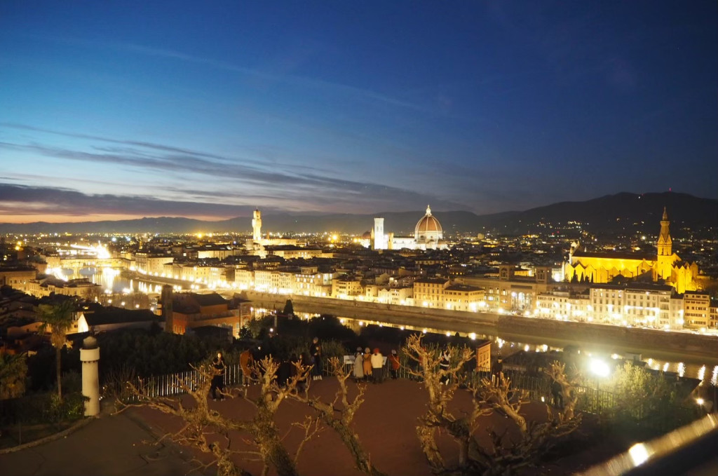 เป้าหมายของค่ำคืนนี้ คือ จะขึ้นไปชมวิวเมืองฟลอเรนซ์ในมุมสูง ทางขึ้นเป็นบันได แนะนำว่าถ้าอยากประหยัดเวลาให้นั่งบัสขึ้น แล้วค่อยเดินเท้าลงมาด้านล่างก็ได้นะคะ ราคาบัสของที่เมืองนี้ การขึ้นลง 1 ครั้ง คือ 1.50 ยูโร จะนั่งไกล หรือ ใกล้ก็ราคาเดียวกันทุกคันค่ะ
