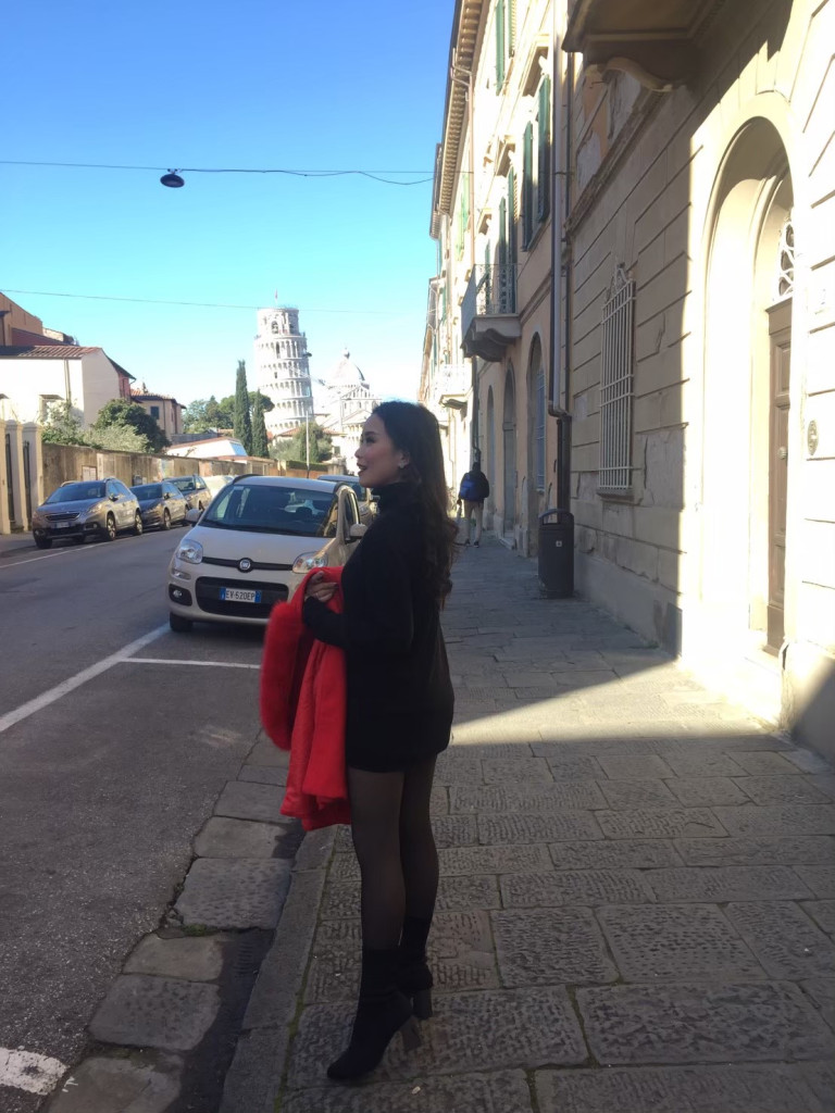 เช้าวันที่ 2 ณ เมืองฟลอเรนซ์ ไปเที่ยวชมสิ่งมหัศจรรย์ของโลกที่เรียนกันมาตั้งแต่สมัยเด็ก นั่นคือ “หอเอนเมืองปิซ่า” ตั้งอยู่ที่เมืองปิซา ในจัตุรัสเปียซซา เดล ดูโอโม เดินทางโดยนั่งบัสไปจากโรงแรม ไปลงสถานี Pizza Vittorio Emanuele II (สังเกตุได้ว่าเป็นป้ายที่คนลงเยอะๆค่ะ) พอลงป้ายแล้วก็เดินตามป้ายบอกทางไปหอเอนเรื่อยๆ แวะถ่ายรูปไปตลอดทาง ก็เริ่มเห็นหอเอนอยู่ลิบๆ