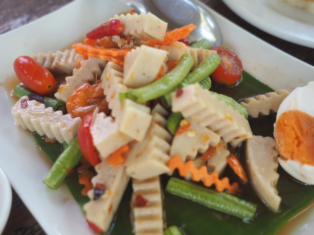 ต่อด้วยส้มตำไหลบัว ( 90 B ) ทางร้านเลือกใช้ไหลบัวอ่อนๆ ทำให้กรอบ และน้ำส้มตำเข้าถึงเนื้อ จานนี้คือ ดีย์ ค่ะ ต่อด้วยอีกจานเป็นส้มตำหมูยอไข่เค็ม ( 80 B ) หมูยอแท้ๆ ไม่แป้ง ไม่เสียชื่อเมืองเลี้ยงหมูอย่างนครปฐมเลยจริงๆ