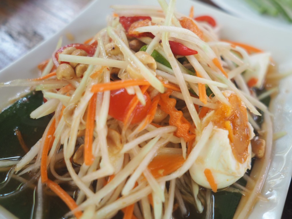 ส่วนอาหารที่วันนี้สั่ง เน้นไปทางอาหารอีสานเลยจ้า เพราะเห็นเมนูปุ๊ป น้ำลายเอื๊อกลงคอเลย น้องพนักงานแจ้งว่า สามารถระบุรสชาติที่ชอบ และระดับความเผ็ดไปได้เลยนะคะ เมนูที่สั่งวันนี้ เพราะตัดใจไม่ได้อยากทานหลายอย่าง ก็สั่งมันทุกอย่างเลยค่ะ เริ่มจาก ส้มตำไทยไข่เค็ม ( 80 B ) รสชาติเผ็ดระดับกลาง ไข่เค็มนัวๆ