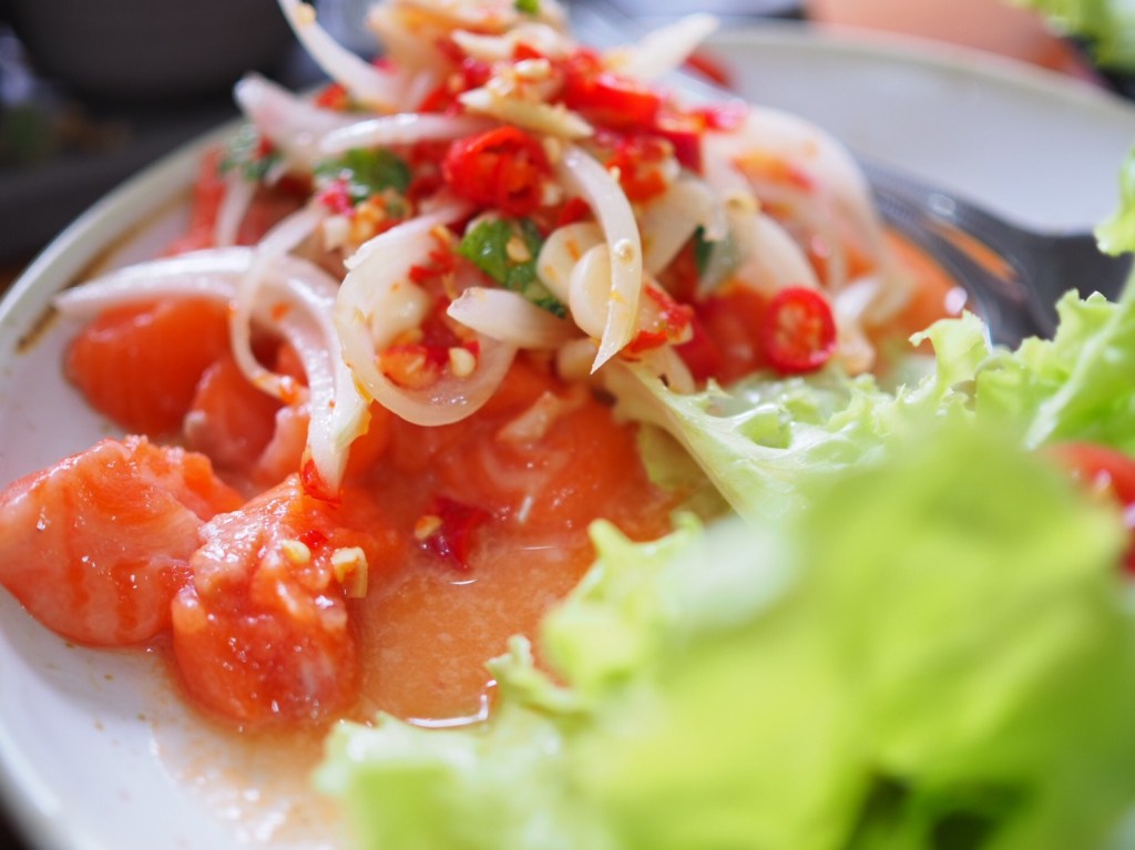 เหลือบไปเห็นเมนูทานเล่น สั่งมาลองอีกจาน รสชาติแซ่บๆ ตัดเลี่ยนของข้าวซักนิด แซลม่อนซี้ด (199 บาท) แซลม่อนหั่นชิ้นพอดีคำ น้ำยำนัวๆ แต่ใครที่ชอบทานเผ็ด แนะนำว่าบอกตอนออเดอร์ได้เลยนะคะ เพราะรสชาติที่ทางร้านทำจะเป็นระดับเผ็ดกลางๆค่ะ