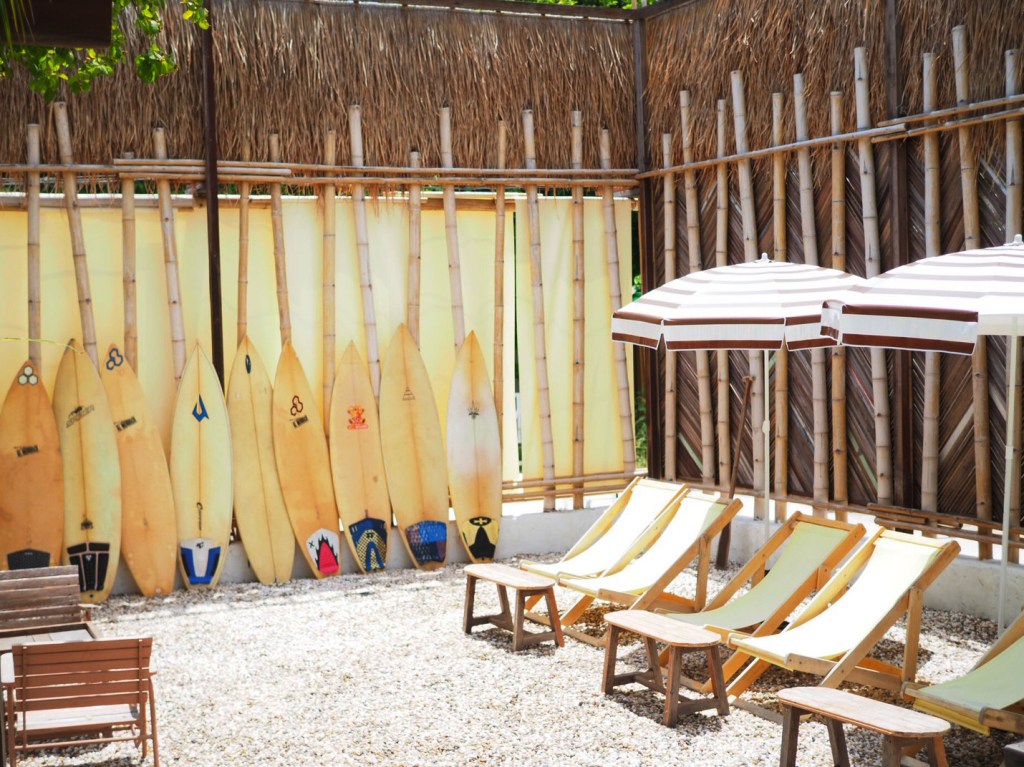 นอกจากนี้บริเวณร้านยังมีมุมเก้าอี้ชายหาด กับกองทัพพร้อมเซิร์ฟบอร์ดจัดมุมถ่ายรูปไว้ให้เราได้ถ่ายรูปกันเก๋ ๆ แต่งตัวมาให้แน่น พร้อพไม่ต้องพกมา